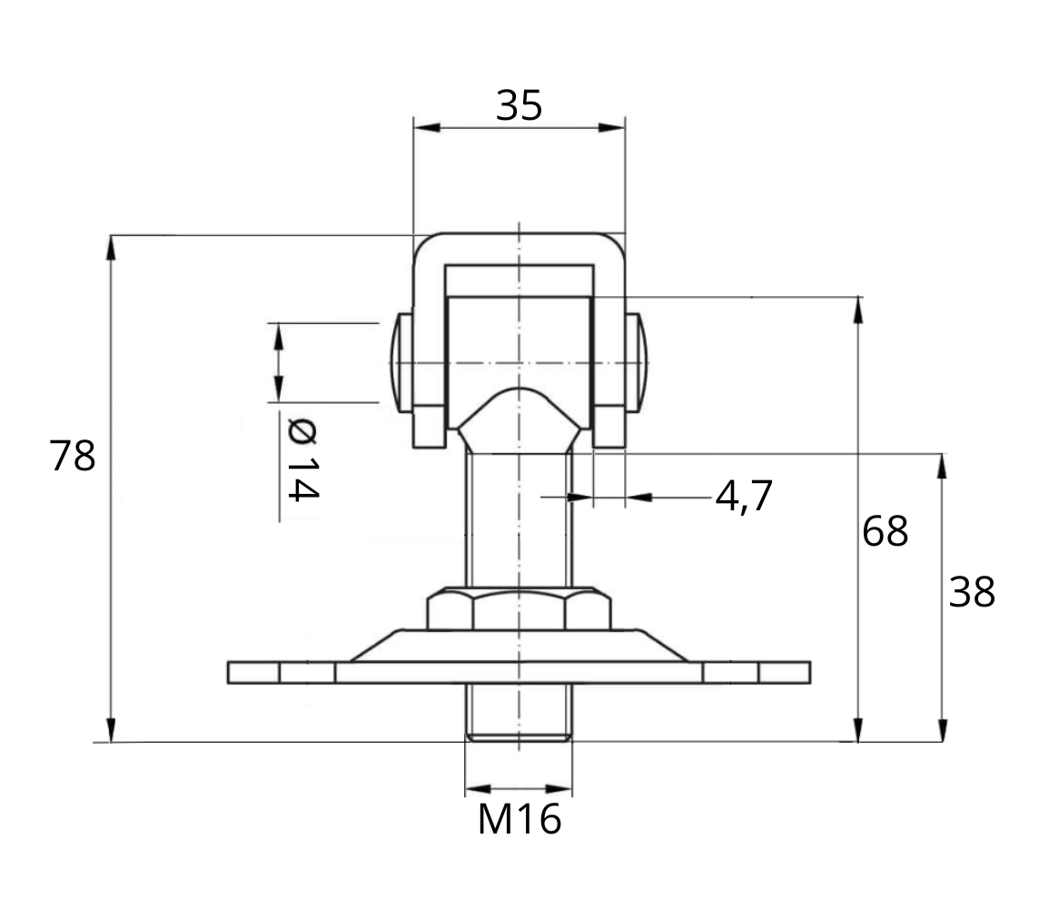 Idealne rozwiązanie do montażu bram i furtek skrzydłowych. Wykonany z wytrzymałej stali i ocynkowany, gwarantuje odporność na korozję oraz długotrwałe użytkowanie. Blacha o wymiarach 78x55 mm posiada cztery otwory montażowe, umożliwiające solidne przykręcenie zawiasu do konstrukcji. Zawias wyposażono w śrubę M16, którą można regulować w dowolnym momencie po montażu – wystarczy dokręcić lub poluzować nakrętkę, aby dopasować ustawienie bramy lub furtki.