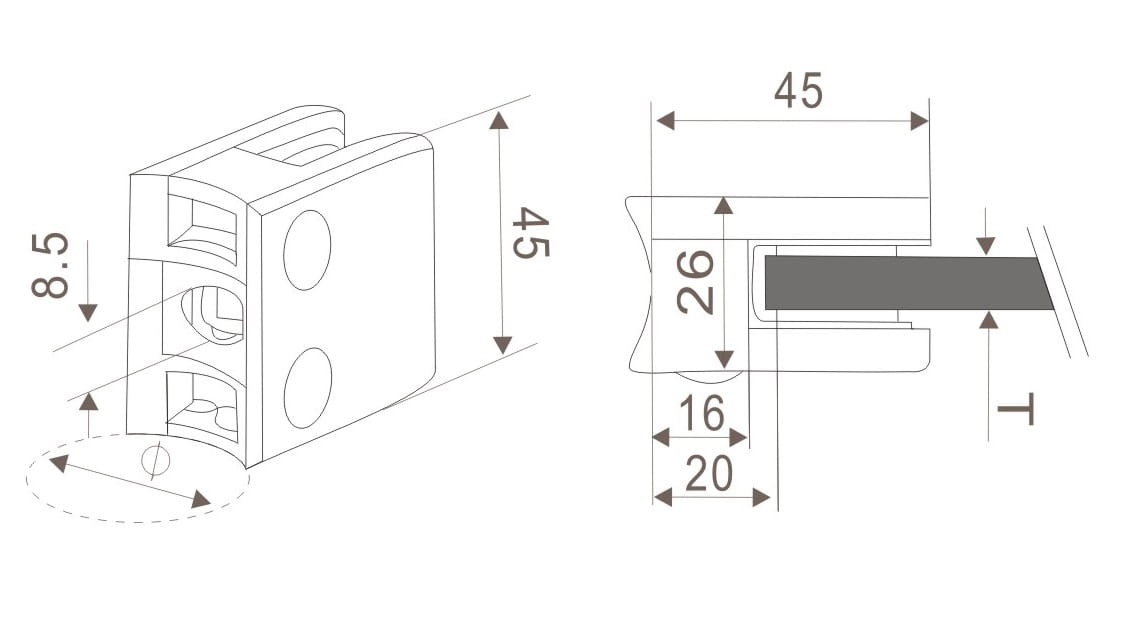 Uchwyt szkła 45x45 dla rury fi 42,4